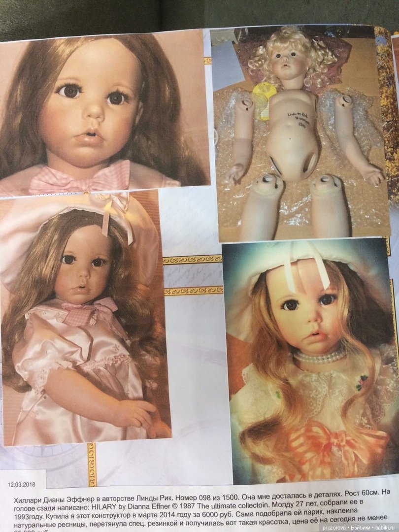 Всем здравствуйте и хорошего воскресного вечера! Сегодня я хочу обратить ваше внимание на коллекционных своих кукол, а то в последнее время многие из нас и я в том числе помешались на игровых куклах Готц, столько новинок интересных и рекламы по ним везде и в контактах, и в Instagram. Но я всё равно очень люблю своих коллекционных кукол и не перестаю любоваться ими ежедневно. Заметила, что гости мои тоже любуются именно ими и очень часто слышу от разных людей: «Только ИХ не продавай!» Для меня коллекционные куклы — искусство, всё равно что картины, написанные великими художниками. Кукол Гюнзель так тяжело было купить, они разлетались как горячии пирожки, так я с трудом поймала Бинеллу, Уду Джейн, Викторию. Я думаю, эти куклы, попавшие к настоящим ценителям долго будут восхищать их и к сожалению, всё реже они показывают своих красавиц. У меня правда, разные куклы, не только от Гюнзель, я не хочу останавливаться на этом и надеюсь, что моя коллекция будет пополняться. Сегодня я не буду фотографировать их снова, хочу поделиться с Вами, друзья мои, я веду дневник или фотоольбом, в котором всё о них описанно, делюсь с вами личным...) Это очень удобно. Показываю только часть, несколько страниц, касаемые только этих кукол.