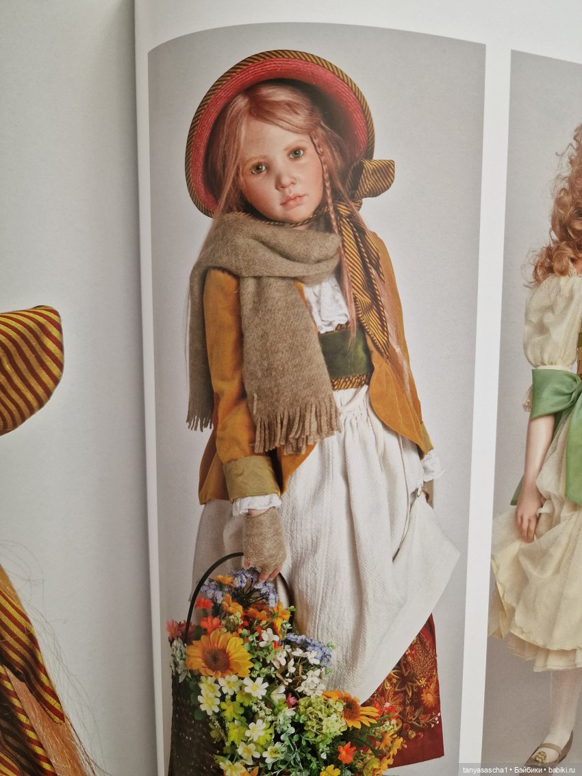 Все куклы Гюнцель, пытаются нам что-то рассказать про себя. Имея таких кукол дома, у вас уже музей.Потому что возле них хочется стоять и смотреть, изучать, как картины художников. КУКЛЫ С ЗАСТЫВШЕЙ ИСТОРИЕЙ. ЛАВИНИЯ… про неё думала тоже, искала её историю в ней. Малышка лет 5 собралась на праздник или может пришла с него, может устала или обиделась на маму, что та не дала Лавиние запачкать нарядное платье. Платье в золотых тонах, с открытыми плечиками, кожаные туфельки с носочками, корзинка с цветами ручной работы, кружевом и лентами, а шапочка с бархатными цветочками, отдельная тема. В образах последующих кукол, можно увидеть эти милые цветочки. Кукла за 2015 год к примеру Fabienne.