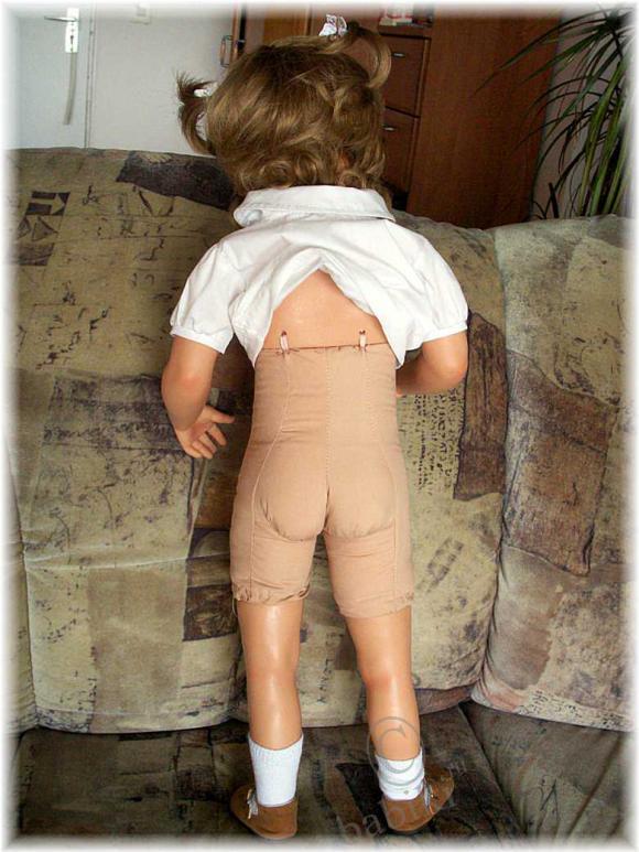 Ручки и ножки 3/4 из резин, грудная пластина, а тело из ткани со встроенным скелетом, что даëт возможность слегка менять положение конечностей.