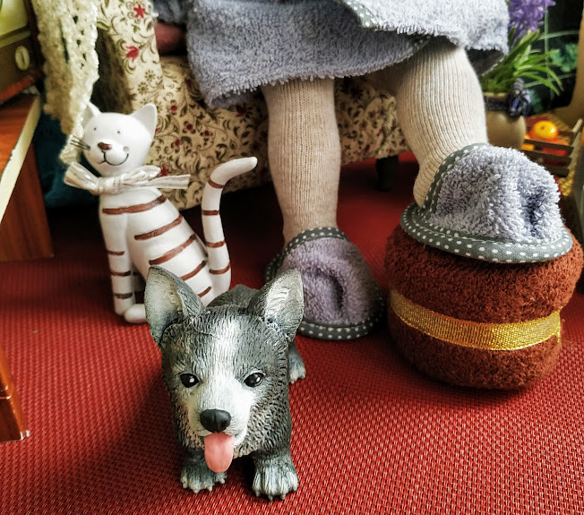 Но самое умилительное, это, конечно, халатик. платок и тапочки! :))