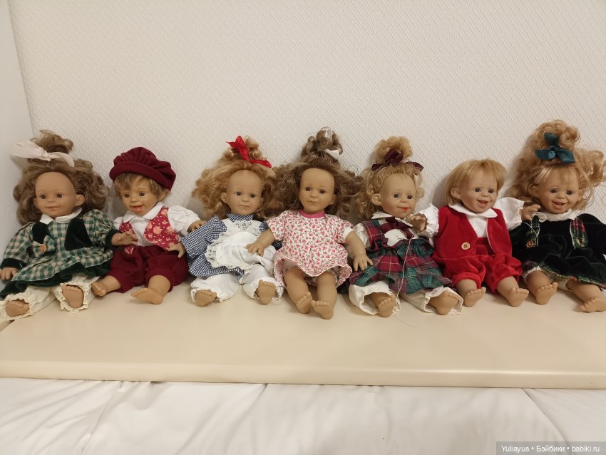 Я разглядела 2 очень редкие, для меня возможно лично, девочки на 2-м фото: брюнетки темноглазые. Малышек 28 см вообще не видела с такими шикаоными волосами, а девочку 38см справа пыталась поселить, но не случилось. Они особенно чудесные! Брюнетки — моя слабость!