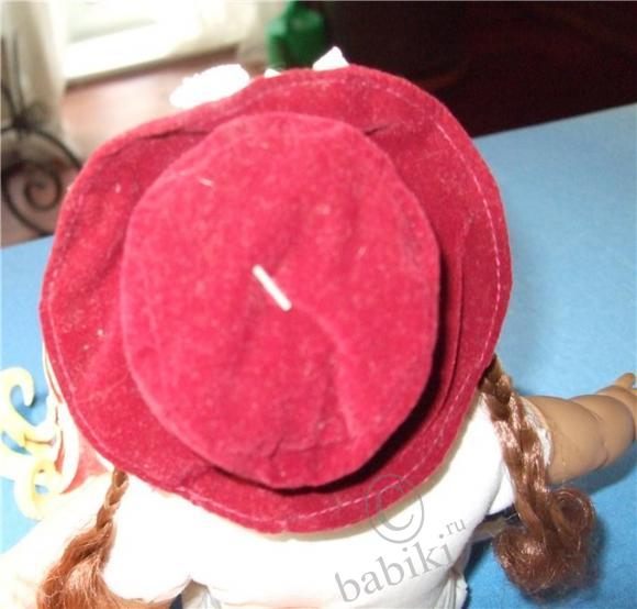 Волосики у девченки оказались очень жиденькими, прошиты с проплешинками, только под шляпу. Так что шляпку пришлось реставрировать в первую очередь.Но вроде бы получилось не плохо…