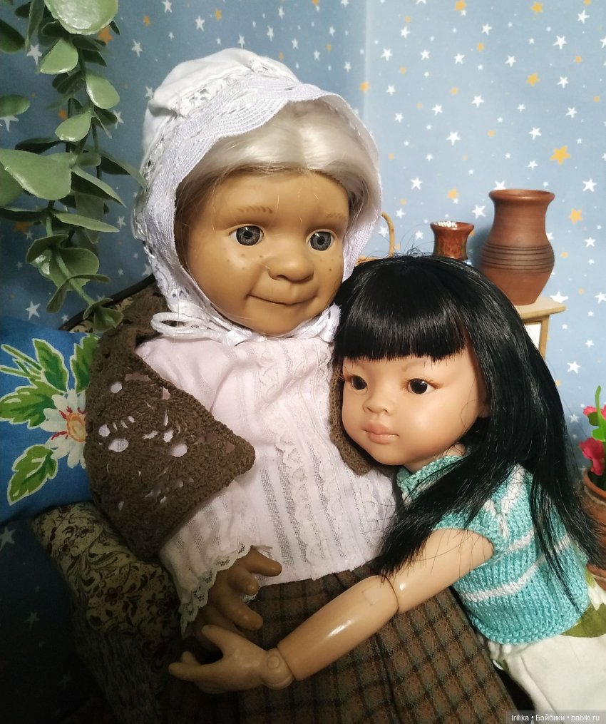 В роли внучки советский пупсик Шурик-Аленка (такими я играла в детстве), в роли бабушки Баба Рая, характерная испанская кукла.