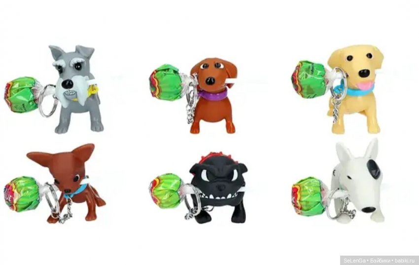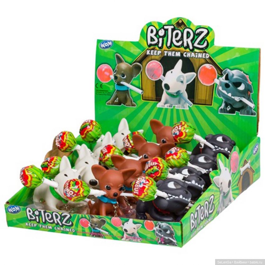 Таксеныш приобретался на бегу на кассе магазина — его достоинство, что в оригинале он держит чупа чупс и есть сквозная дырка во рту, куда можно всунуть палку или цветок и ТД. Я поискала в инете, получается что это вот такая серия от Wom, Biterz