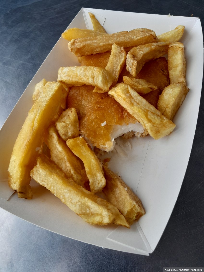 Еда выглядит вкусно, но я жирное вообще не люблю, жареную картошку в частности не люблю, да и к рыбе отношусь с прохладцей))) — предпочитаю мясо))) Так что как-то на традиционное английское блюдо смотрю без энтузиазма))))))