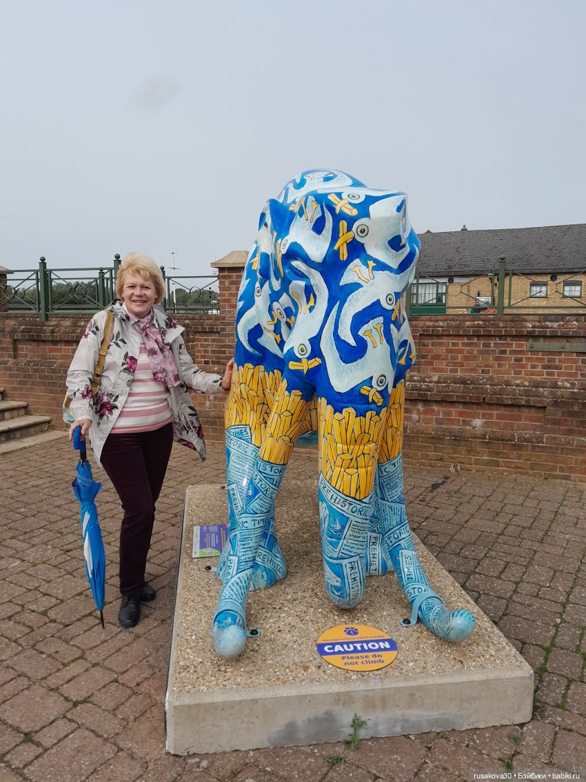 У нас на набережной, в нашем городке, стоит мамонт, расписанный под «Рыбу с картошкой».