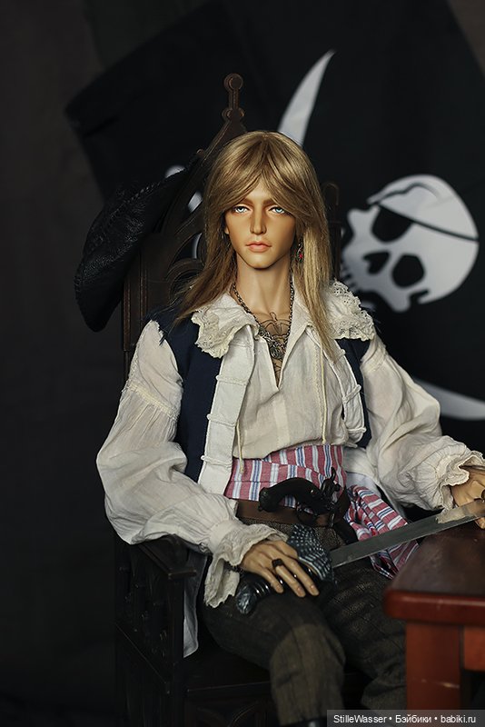 Идея с пиратскими сапогами пришла в голову в последнюю секунду — разутый Джек Воробей очень возмущался, но саблю и пистолет у него отобрали заранее))