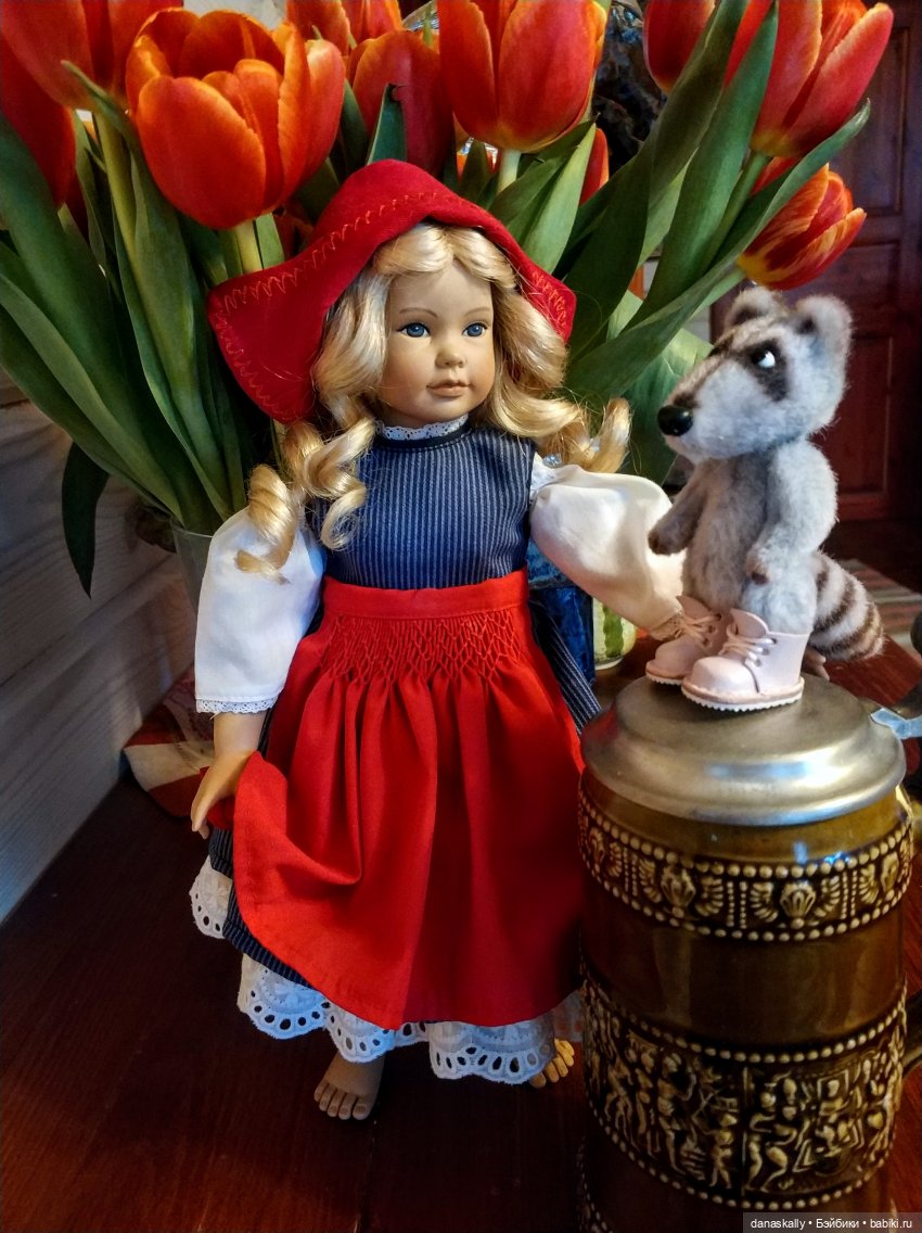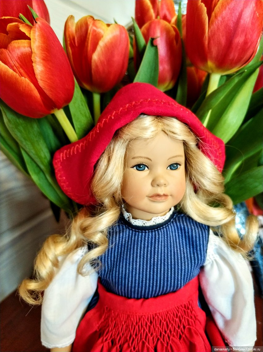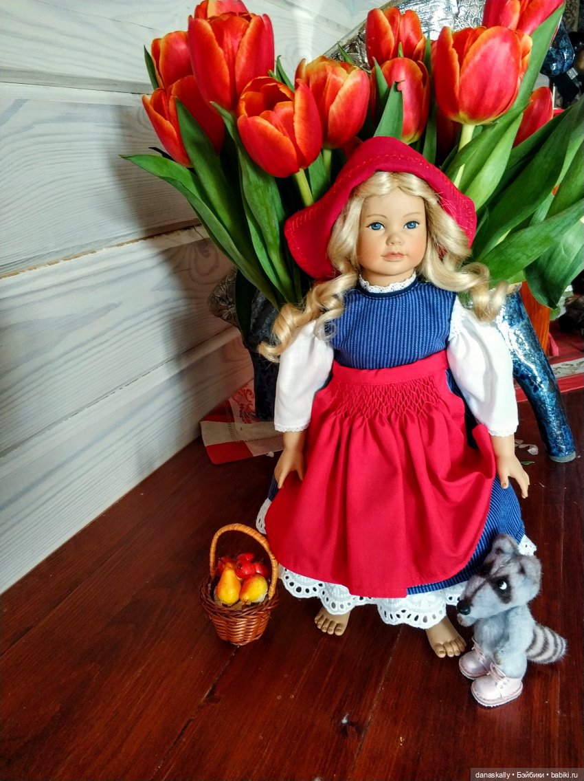 Карла, её называют Красной шапочкой. Ко мне она приехала в платье и фартуке. Надела нижнюю юбку и шапочку.