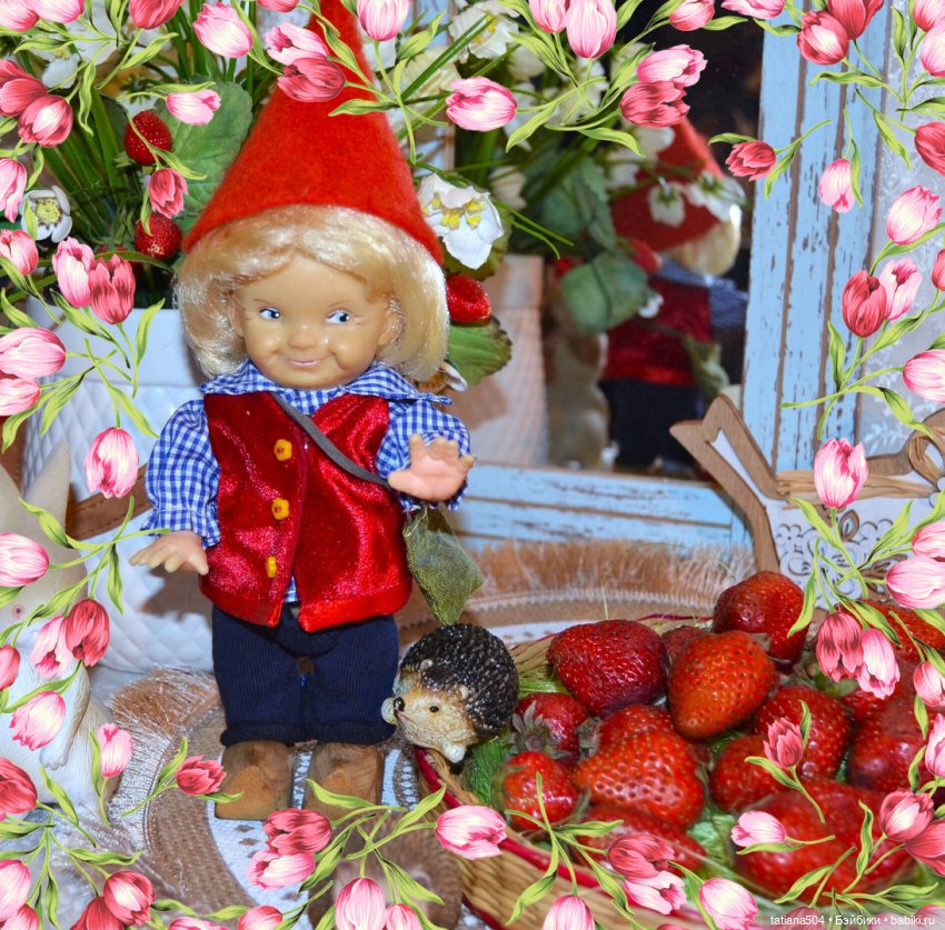 Какие у тебя чудесные помощники (и девочки, и гномик)! Столько вкусной клубники собрали!