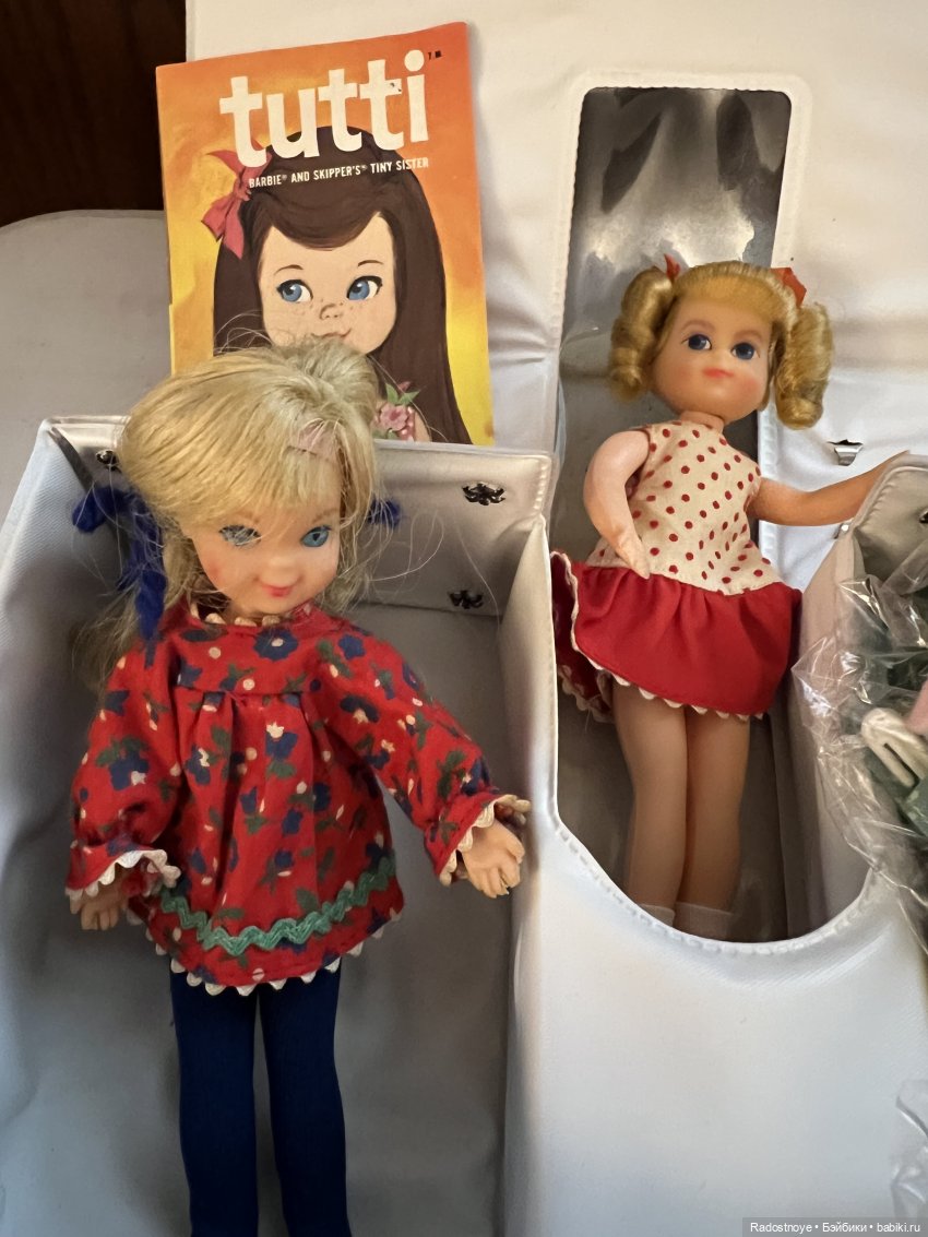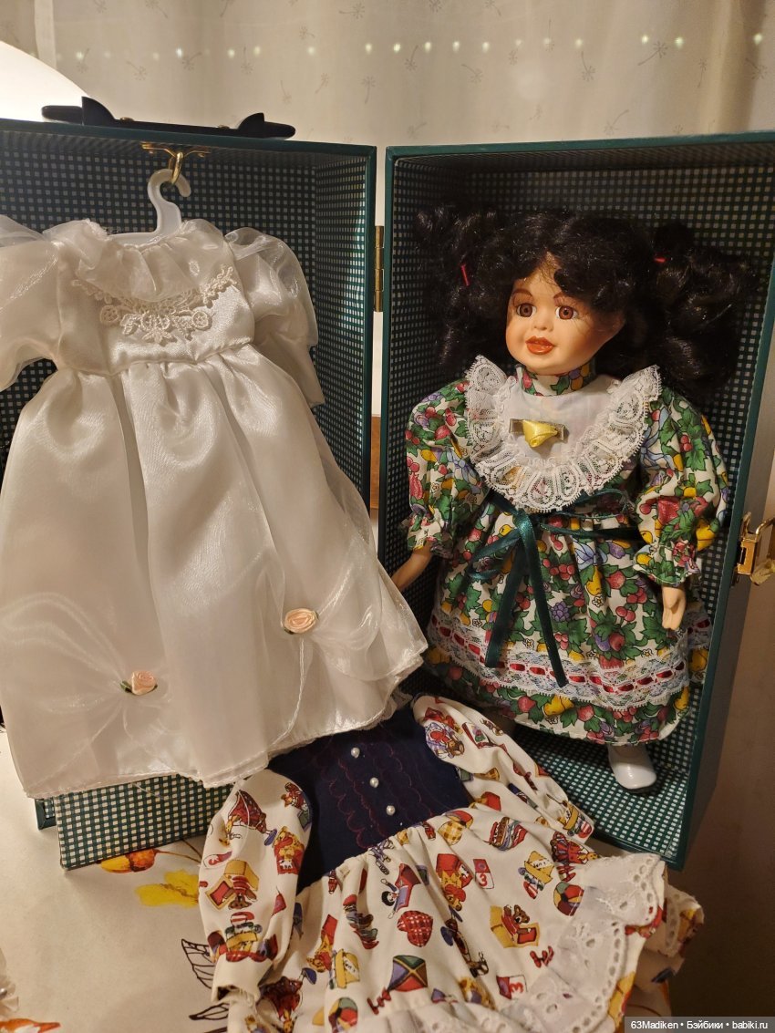 Такой ящичек можно использовать, как переноску для небольшого размера кукол. Он меня сам по себе обрадовал. А уж платьица дополнительно! С куколкой, явно, никто не играл. Всё в прекрасном состоянии. 👍