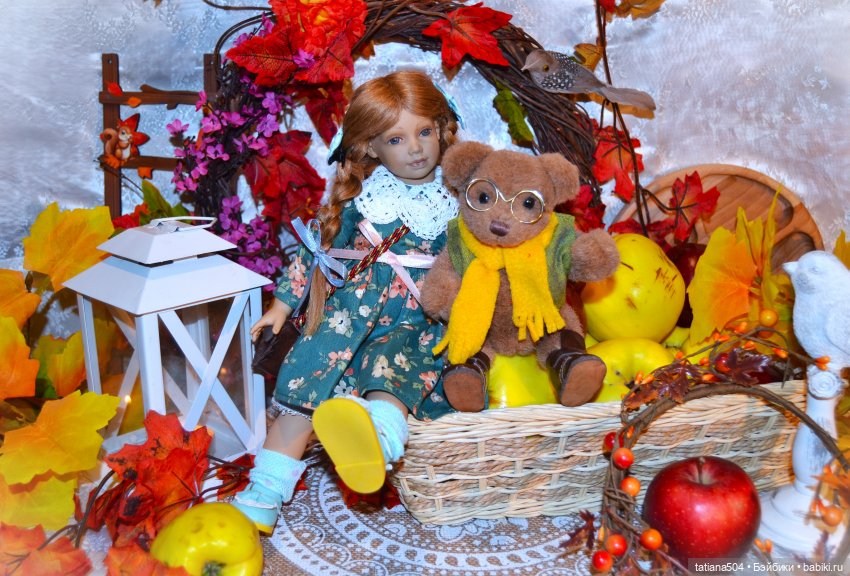 Бекки решила мне помочь составить осенний натюрморт, мы принесли с ней айву и спелые яблоки, фонарик, но как оказалось фрукты любят ещё и домашние медвежата! Поэтому кому то, не нужно было даже приглашение!