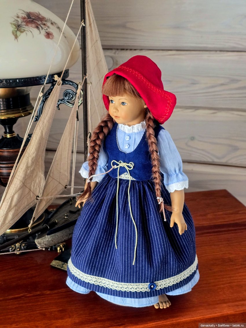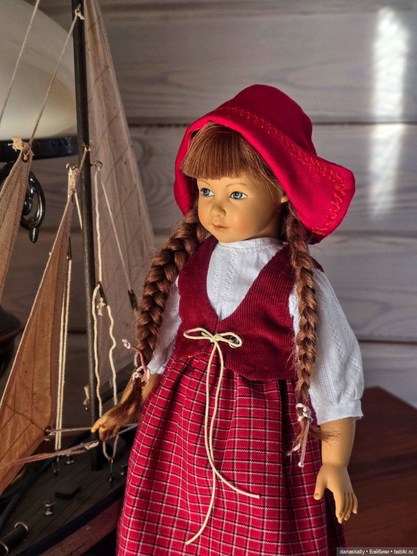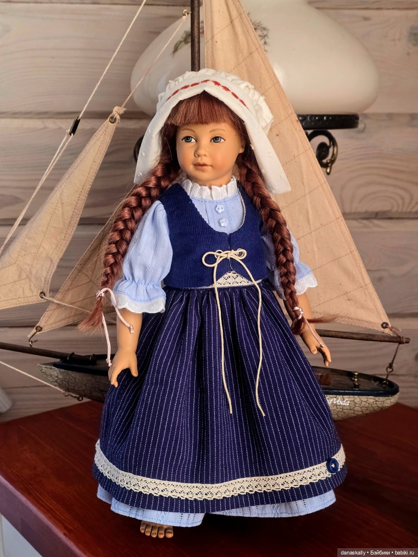 Здравствуйте, друзья! Теперь я убедилась, что бороться с появлением чудесных созданий от Хайди Отт в моём доме бесполезно. Они приходят сами. Я вяло протестую, но это не производит на них впечатления. Недавно обнаружилась Катерина, и прибыли наряды от нашей доброй феи Мари. Катерина, одетая в платье и фартук, появилась и заметалась рядом с кораблём. То ли горничная, то ли повар.