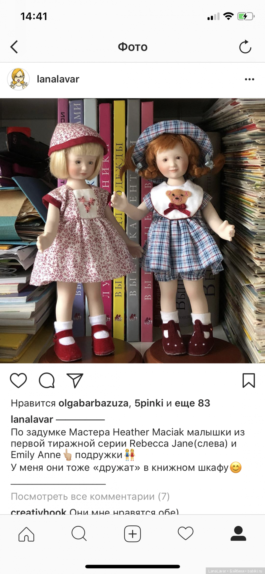 Куклёнок влюбила в себя моих домочадцев и поселилась в книжном шкафу (очень у неё удобный размер 21 см)