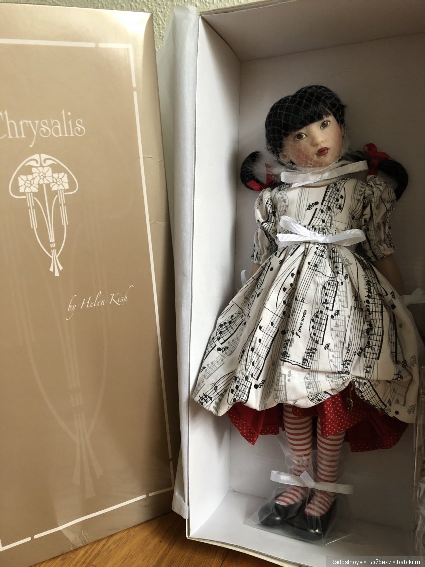 С 1983 по 1993 год Хелен Киш продолжает оттачивать навыки фарфорового кукольного искусства. С каждым разом ее куклы становились более реалистичными, их выражения душевными. Куклы Хелен Киш теперь приобрели индивидуальность и собственный стиль, и это делает их узнаваемыми и отличаемыми от кукол других авторов. За десять лет, Хелен создала очень красивые и запоминающиеся куклы. Одна из них, это маленькая скрипачка Сьюзи. Чудесный ребенок, голова, руки и ноги фарфор, тело тряпочное. Рост небольшой 33 см. Лимит очень маленький, всего 15 кукол на весь мир. Год выпуска 1985. После этого выпускалась еще одна скрипачка 1989 года выпуска и лимит был уже побольше 25 кукол, рост 16 дюймов 40 см. Я буду показывать вторую девочку.