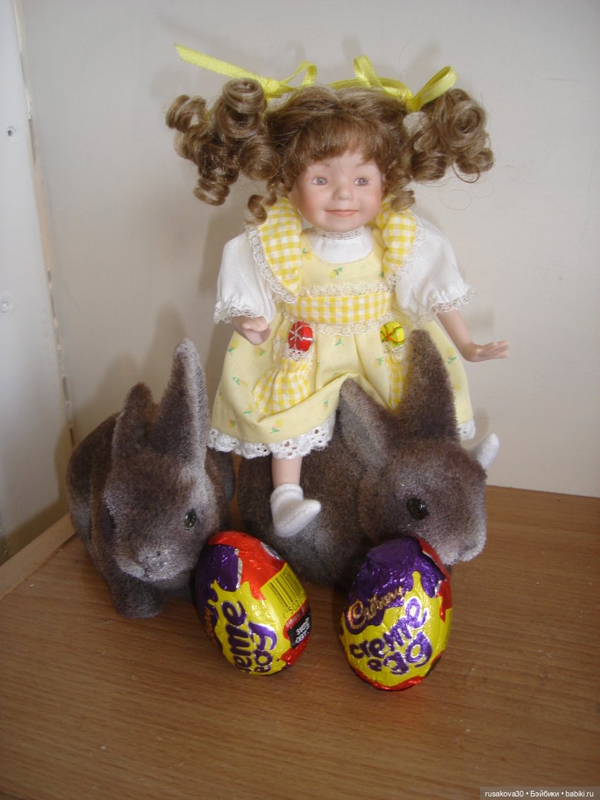 Райли и цыплята. 2004 года выпуска. Рост 20 см. Не шарнирная. Ручная роспись лица, волосы паричок. Прическа косички, как у всех кукол из этого топика.