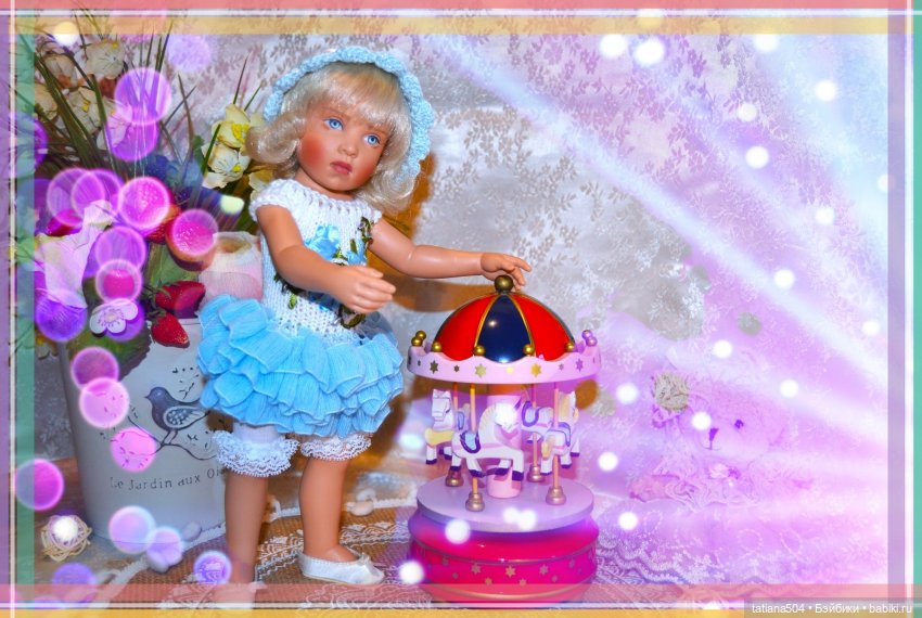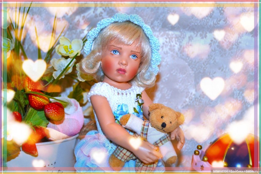 Не спалось и я открыла сайт, и какой то неведомый магнетизм меня привел на страницу с куколкой! Я увидела именно ее… На меня так смотрели васильковые глазки, ее щечки чуть чуть покраснели от волнения, а губешки бантиком почти шептали: — Хочу домой, к маме! Яркий образ девочки в платье цвета фуксия, окончательно меня пробудил и покорил! И вы угадали… Прошло меньше суток, как куколка была уже в пути, по дороге домой. За эту очаровательную блондинку я бесконечно благодарю ее крестную феечку – Женечку! Evgenija_Sh Я поражаюсь, какой любовью и заботой была окружена малышка, какой роскошный наряд и пожелания новой хозяйке привезла она с собой – настоящая сказка!