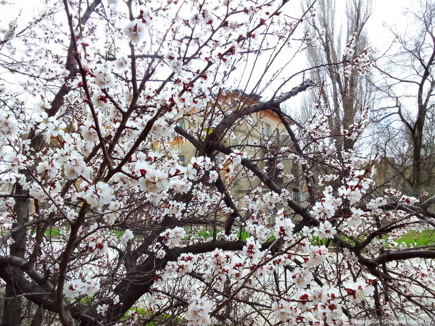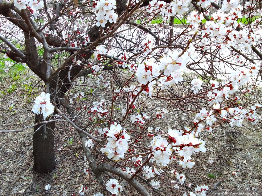 Но нашла Баффочка весну, в окрестностях старого дворика, когда увидела чудесные бело-розовые бутоны абрикоса, тут остановить ни меня, ни ее было не возможно! Любовались и фото не уставая делали.