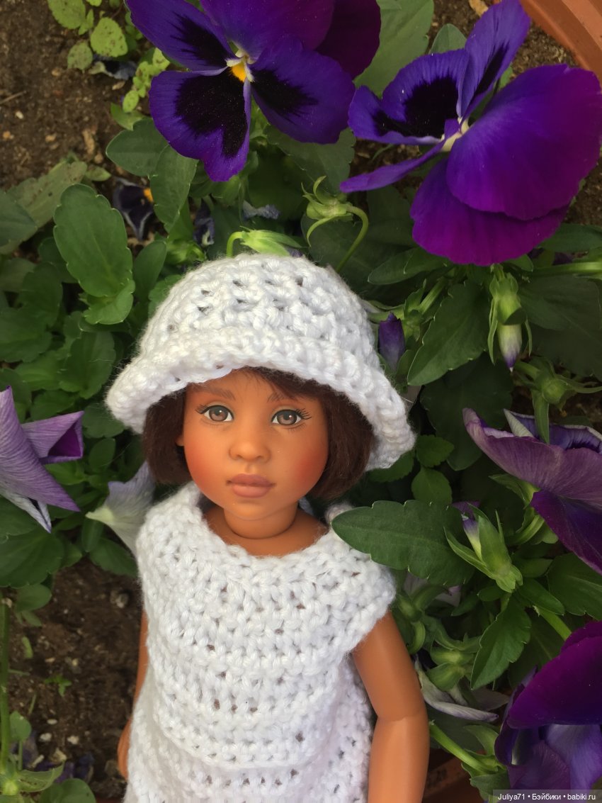 Потом сшила ей красивые трусики, колготочки, туфельки с золотыми пряжками, нашла подходящую шляпку и связала её первое ажурное платьице. В голове столько разных образов для неё, надеюсь они реализуются…