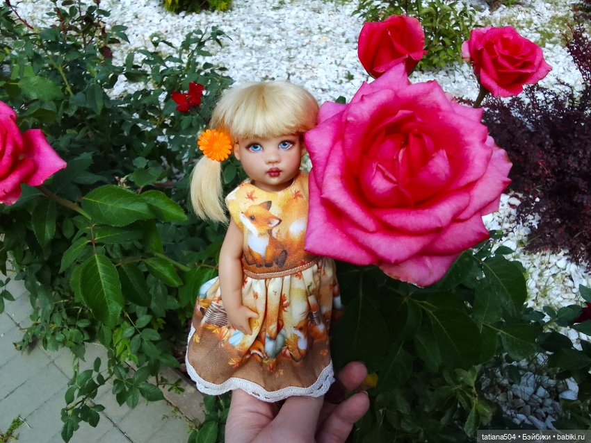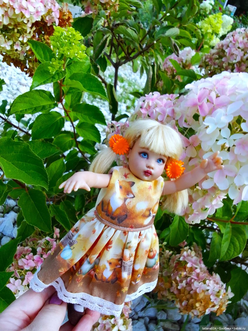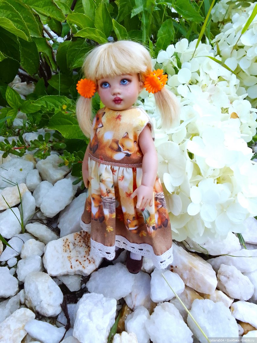 А платье покупала у одной мастерицы для куклы Райли, когда еще ни одной Райли не было у меня. Но так хотелось нарядить такую малышку в это платьице с лисичками, желание — победило)) Оно наверное счастливое — сразу двух таких Раечек привело! Люблю их всей душой!