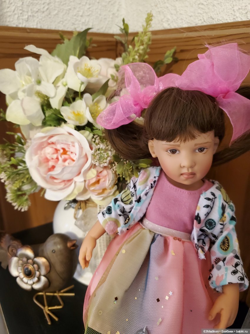 Но, естественно, хотелось ей подобрать что-то более подходящее по размеру, так как одежда от паолок великовата для Бетани. В начале марта на Тишинке была выставка кукол и я захватила с собой рыжика, чтобы приодеть и обуть её. К счастью, там я нашла магазинчик Любови Трошиной, и мастер мне сходу предложила примерить платье для кукол dumplings Meadowdolls, как оказалось, размеры этих кукол совпали с размерами моей 27-см Бетани. Еще мастер меня снабдила розовыми ботиночками и чулками. Ссылка на шопик мастера babiki.ru/shopik/lyubovtrosh/