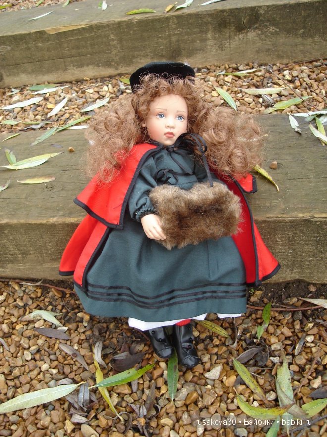 Я мечтала и ждала Соню в свою коллекцию несколько лет и она оправдала мои ожидания: выражение спокойствия на лице, мохеровые волнистые волосы усиливают мягкость взгляда и нежность черт лица. Ну что за красавица! Соня очень красиво одета, мне всё нравится: и тёмное в полосочку платьице с белым воротничком, и сапожки из натуральной кожи, и шапочка с меховой опушкой. А красное вельветовое пальто просто шикарно!
