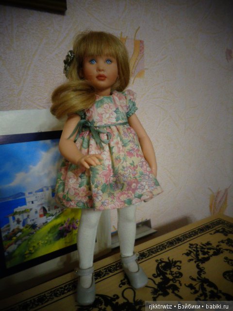 Глазки у нас красивого голубого цвета, роспись ручная. Девочка очень серьезная, как и многие другие куклы этого молда)))). Об Алисии я мечтала давно и вот благодаря Светлане она у меня появилась. Сначала Пеппи, а потом Алисия. Лимит 250. 1999 год выпуска. Ростик 30 см.