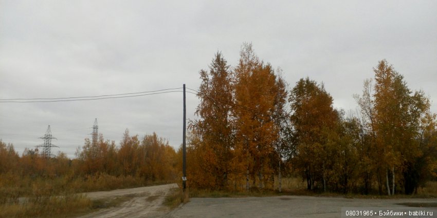 Далеко уходить не стала, медведей боюсь)), а тут конечно всякие провода мешают, но все равно видно какие красивые деревья))