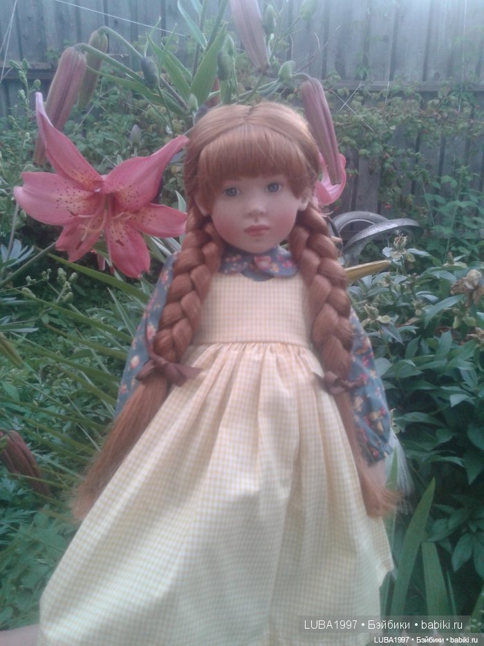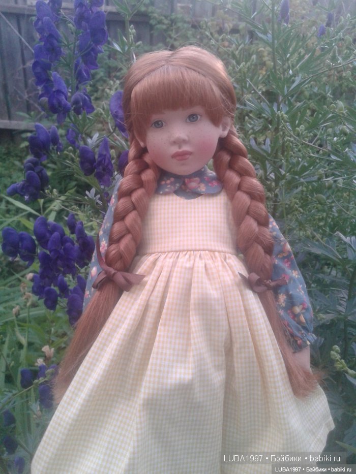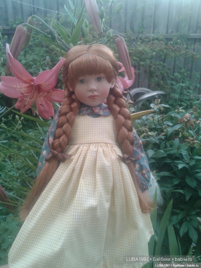 Энн, у меня она Анечка, очень позитивная девочка))) Очень нравятся ее рыжие косы, веснушки на лице… я их просто обожаю))) и ауфит у нее классный))) Зеленые глазки, рыжие волоски и венушки -хорошее сочетание, правда?))) Она тихая спокойная девочка, приехала даже грустная такая, но увидев моих Кишей, особенно их количество- сразу расцвела