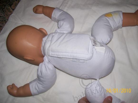 написано: Zapf Creation AG, что-то ещё мелко — цифры-буквы, справа — большими буквами 16 RN, слева — буква Z в кружочке с шариками. Что делает — плачет, спит-закрывает глазки и сопит, плачет, что-то лепечет, смеётся, ещё какие-то звуки произности — гулит. Я ещё не полностью его исследовала, но, думаю, что это всё наверное…