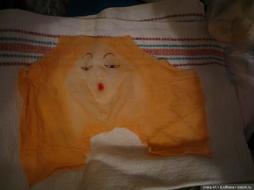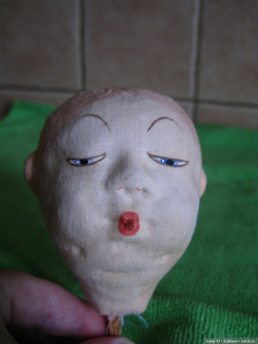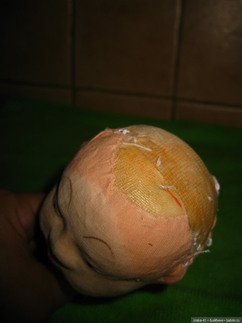 Моей кукле терять было нечего, поэтому я голову полностью разобрала, маску поправила, насколько могла, ткань-лицо постирала. В любом случае, получилось лучше, чем было:
