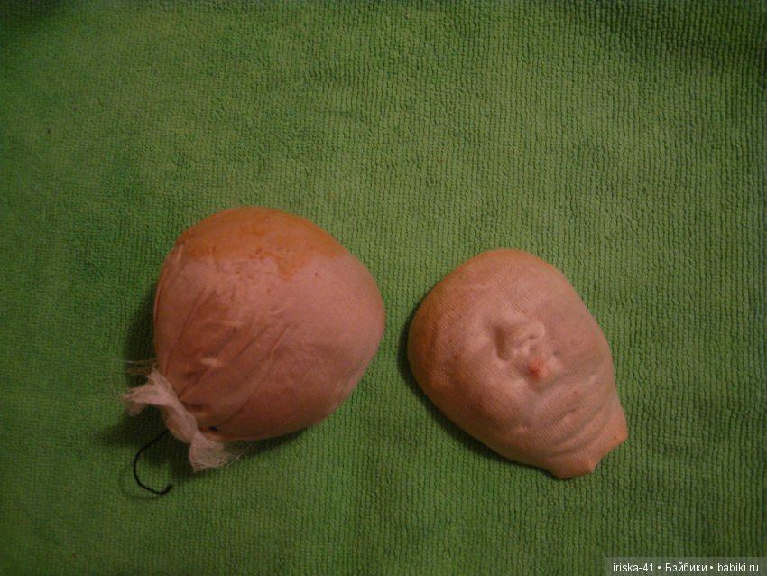 Голова состоит из тканевого мешочка, наполненного очень мелкой древесной пылью. На мешочек наложена отпрессованная маска из нескольких слоев марли, пропитанных скорее всего клейстером: