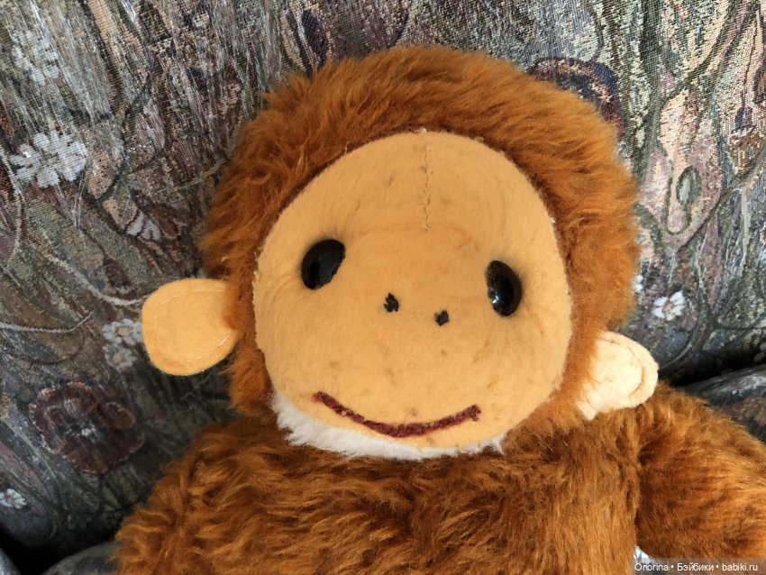 Представляете, вся машинка в кусках слипшегося поролона, обезьяна без лица. Жуть. Я испугалась, что муж будет ругать за испорченную машинку, а он испугался, что мне будет очень жаль обезьяну (это папина ещё), стал меня утешать. Машинку отчистили. Обезьяне Жакоше я сшила новое лицо и ушко. Голову набила синтипухом.