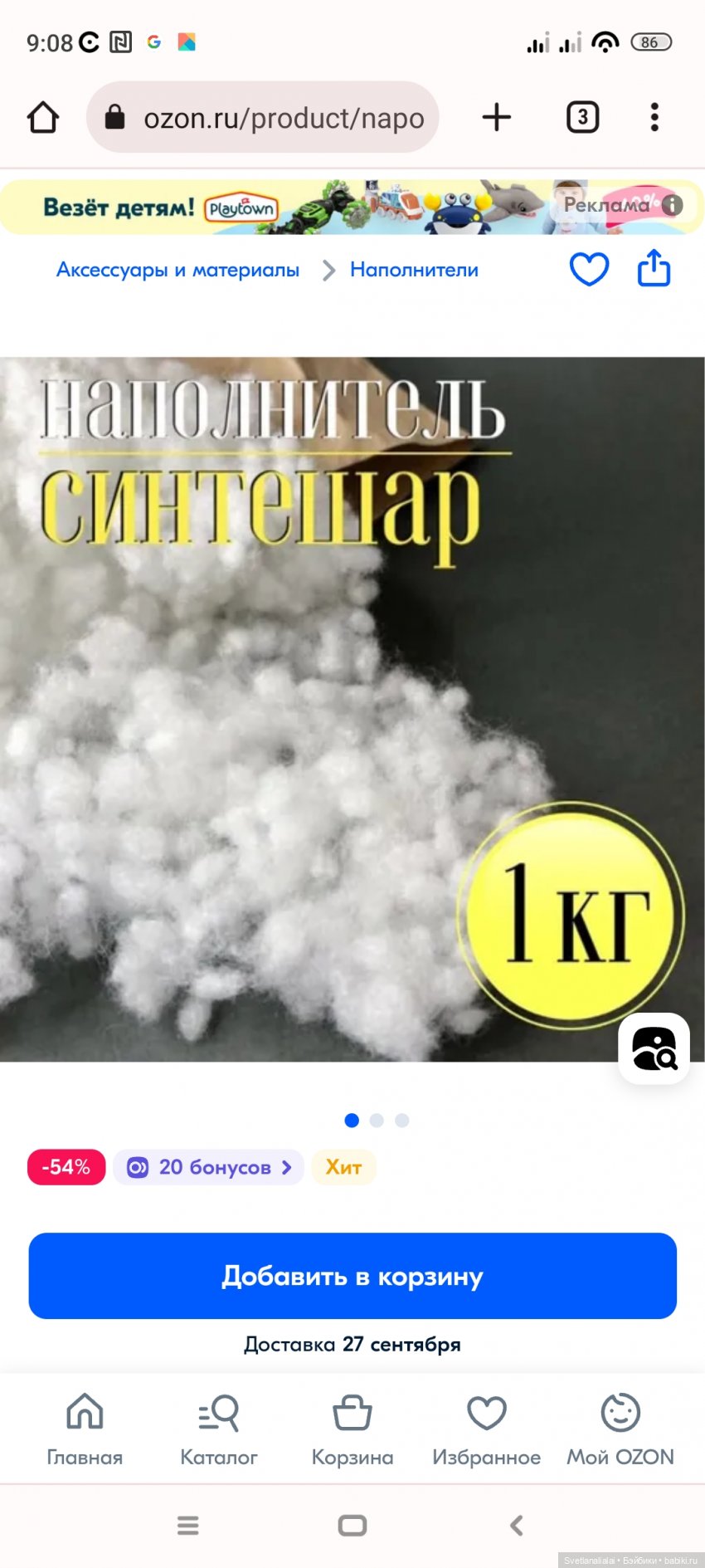 Наполняла я синтепухом для подушек, который в шариках свален.
