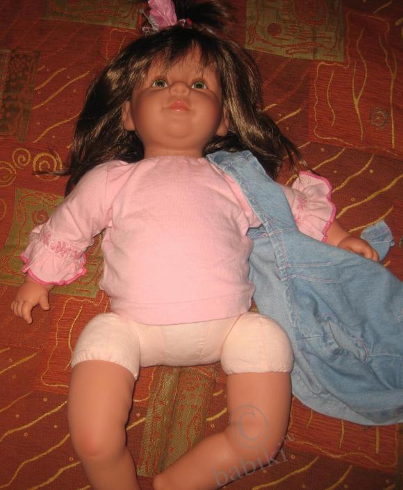 Винил очень нежный, мягонький.Куколка набита утяжелителем вся и тельце, и голова, и ручки-ножки.Когда «ребенка»берешь на руки полное впечатление что берешь младенца