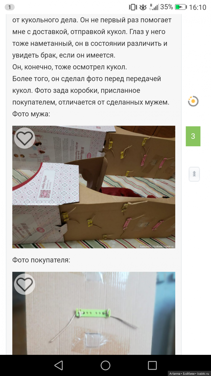 Мне кажется и так понятно, что когда заказываешь партию куколок, брак возможен. Но обо всем следует предупреждать и честный продавец всегда вернет хотя бы часть денег, за недосмотр. Тут на мой взгляд ситуация из ряда вон. Не совершайте моих ошибок, требуйте подробные фото и хорошо осматривайте своих куколок при получении. Желаю всем честных продавцов и не связывайтесь с kukliona21. Оставляйте комментарии. Вот хороший анализ ситуации