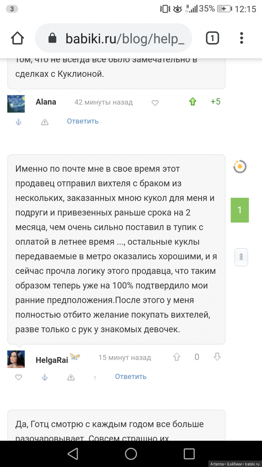 Я брала куколку Gotz тоже на бб и был нюанс. Но мы решили без проблем этот вопрос. И я осталась очень довольна в плане продавца и еще и еще раз куплю у нее. Потому что человек порядочный и ответственный.
