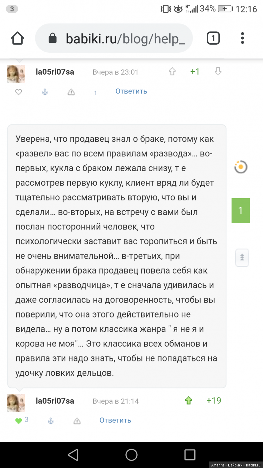 Просьба дочитать до конца, это касается всех. Здравствуйте уважаемые бэбиковцы. Хочу поделиться неприятной историей, которая со мной произошла на той неделе с продавцом