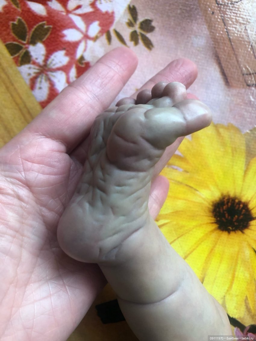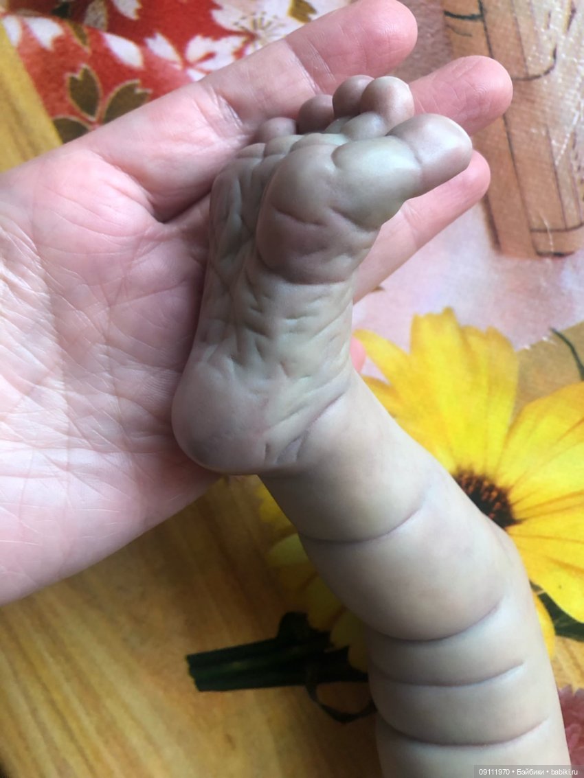Я покупала Реборн для переделки. И знала отдругих недостатках, которые мне озвучили- стёрта краска на кончиках пальчиках и удалены волосы. Надо было снова прошивать волосы.