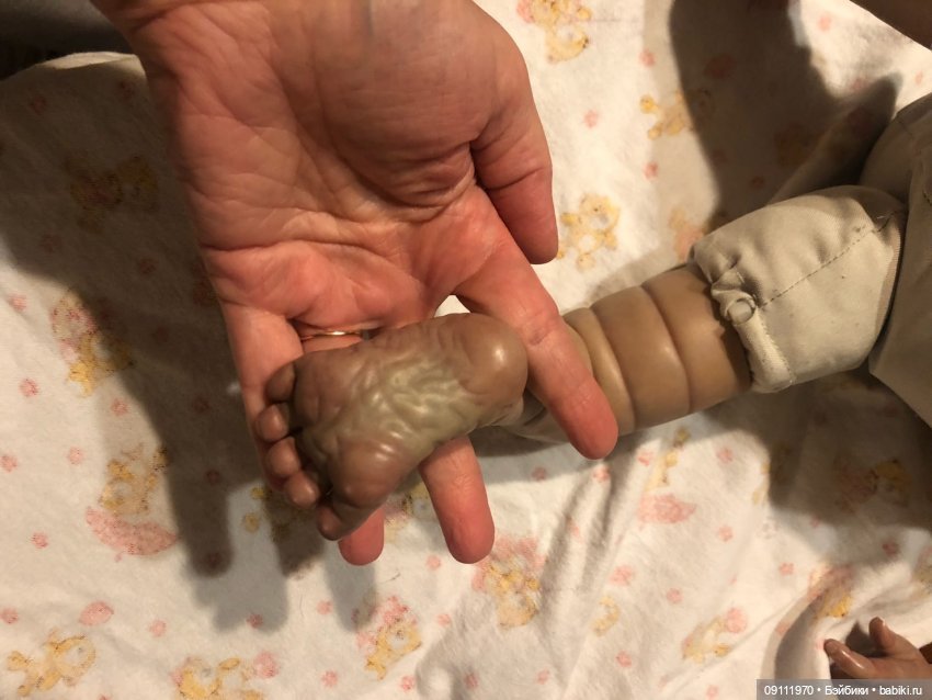 напр. на ваших фото я вижу что кукла негроид, т.е. кожа коричневая, с зеленоватыми и красноватыми пятнами. в объявленит вроде европиоид. так что не могу сказать кто прав ) тк не знаю реальный цвет, а у продавца нет фото пяток.