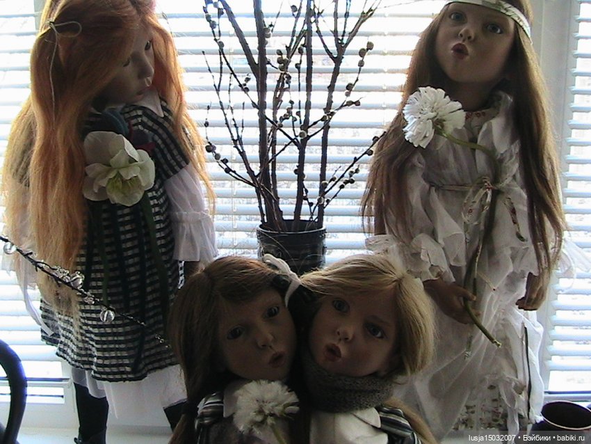 У меня много этих кукол и задумалась не поменяться ли с покупателем на эту куклу… Посмотрела на коллекцию и вижу, что не готова расстаться ни с кем, они мне очень дороги (с двумя могу, но именно они у меня с дефектами — у одной парик не приклеен, вторая белокожая и имеются недостатки — глаза со щелью поставлены и шея не совсем ровно и по цене моя выгоднее)