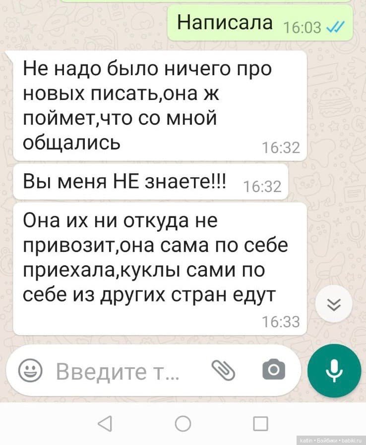 Сказав мне это, она меня заблокировала и параллельно изменила правила в своём шопике, дописав там фразу задним числом, что якобы её куклу нельзя обменять.