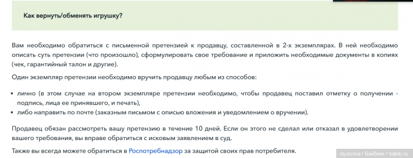 — Я со сломанной куклой и осознанием того, что потребитель не может ничего сделать с произволом продавца. Я-то якорь починю, а если бы это был подарок для ребёнка?