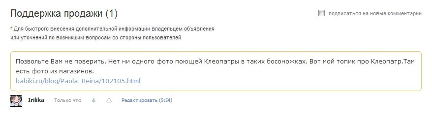 Я о предложении запретить скрывать комментарии — для меня это будет кошмар. Большинство моих продаж — сборные. И если я не смогу скрыть неактуальные комментарии после редактирования объявления (лот № 1 — продан, лот № 4 и 5 — в резерве, и т.д.) до нужной актуальной информации будет просто не докрутиться!