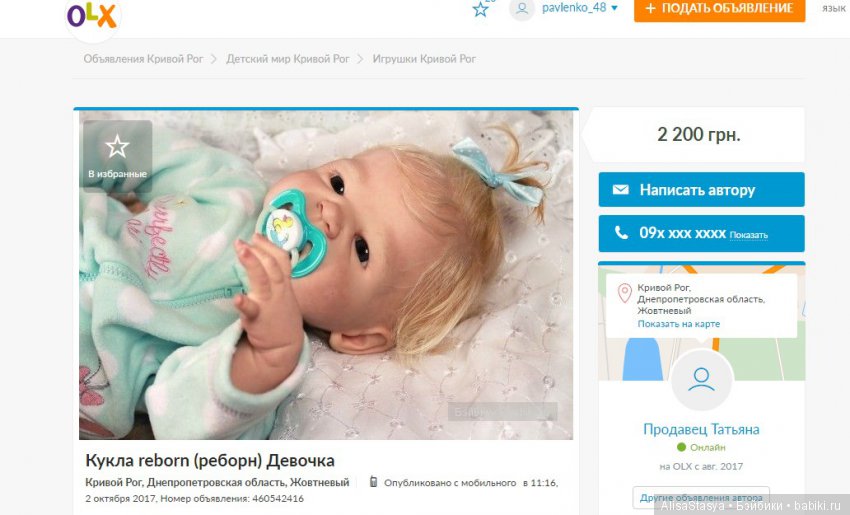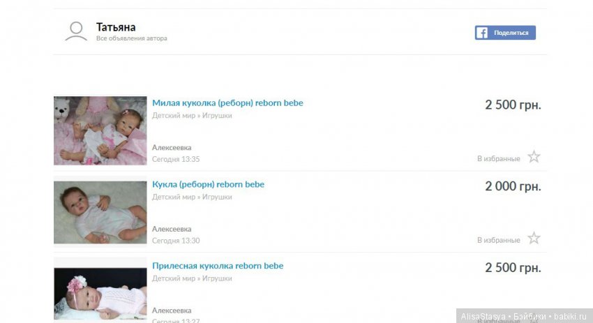 Девочки, помогите заблокировать мошенницу! Ссылка не вставляется, так что можно забить на олх слово реборн. Сегодня добавила 5 высококачественных реборнов за копейки. Я поставила жалобу, но одной моей может быть мало. Кто узнал своих деток — поставьте жалобу.