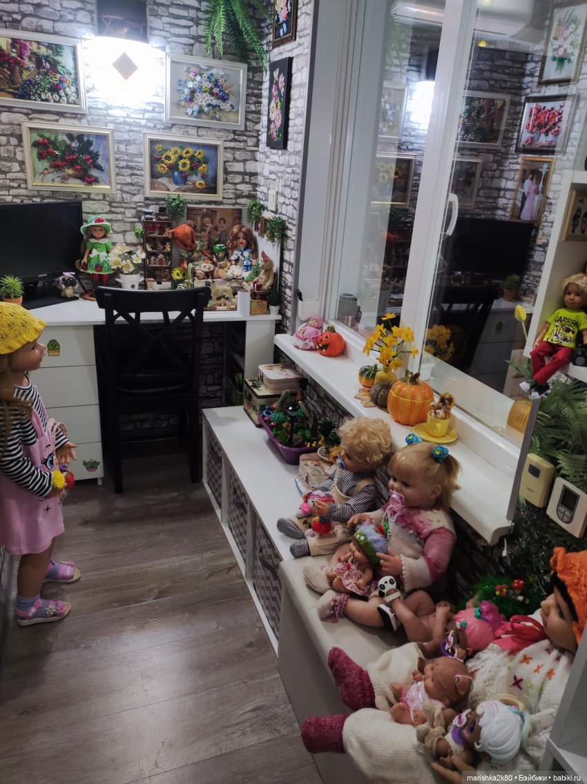 Добрый вечер! У меня появилась первая антикварная куколка. 1920 х годов. Я ею очень довольна, очень рада, что она у меня появилась. Она тёплая и уютная. Небольшая, 35 см. Может закрывать и открывать глаза. Иногда, но редко, пищит. Я ей обустроила винтажный уголок в котором есть старинные вещи. Кроватка СССР, ёлочка СССР, гобелен 1950 х годов, паричок поменяли (1995 года), пупсик старинный, картины 1990 х годов, авторские. Остальные вещи современные, под винтаж.