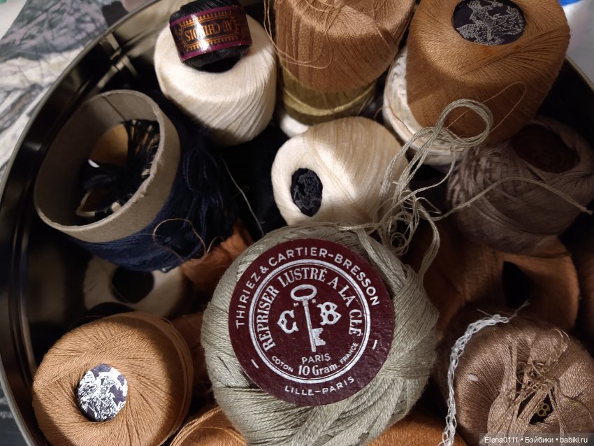 Помню коричневые моточки, нитки матовые, без блеска. Наши, российские скорее всего.