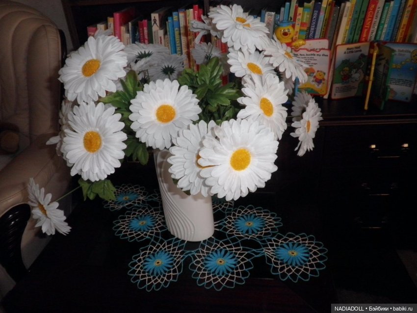 потом постепенно перешла на вязание салфеток побольше диаметром