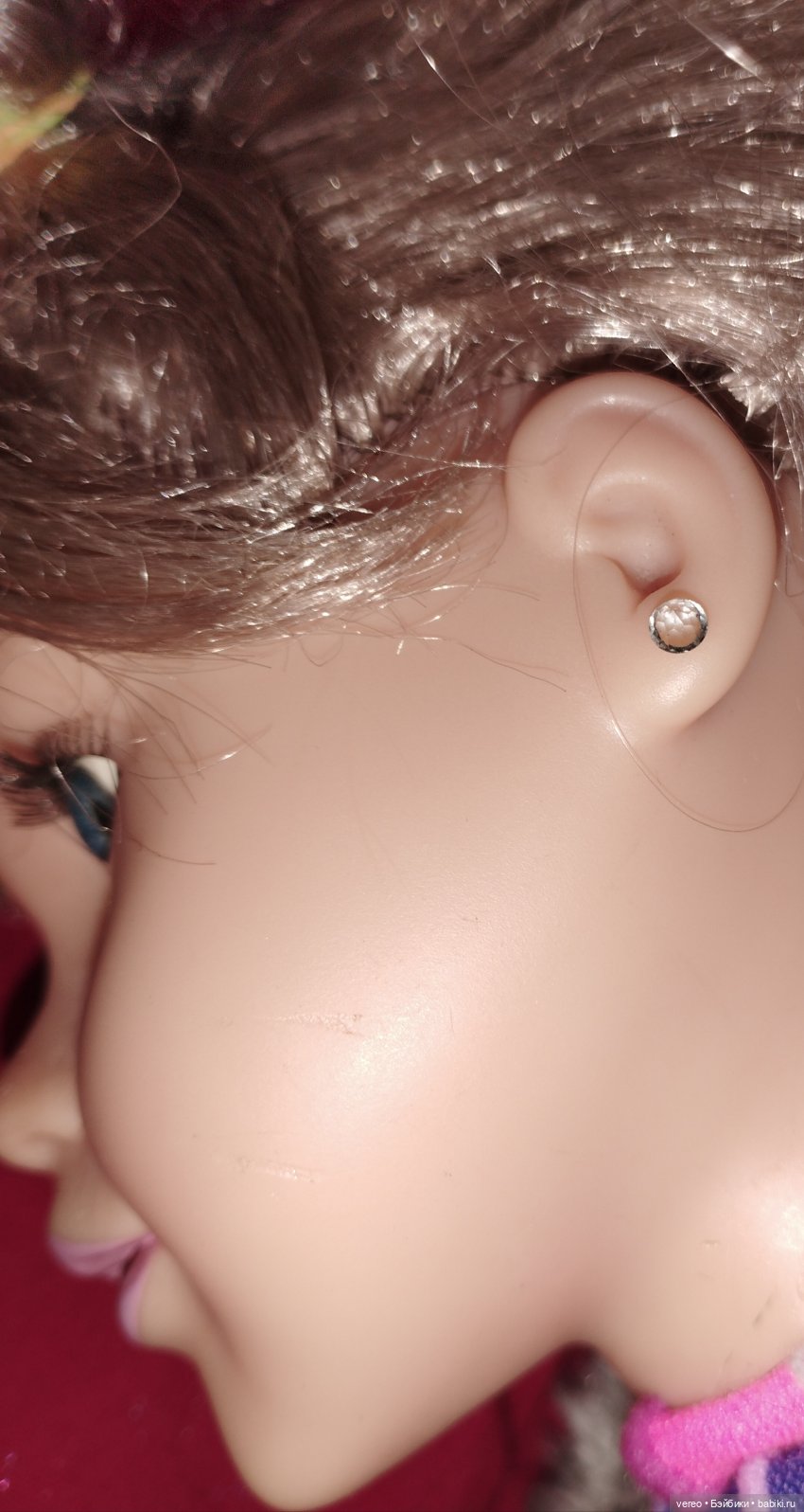 Тогда в ухе куклы образовалась бы такая воронкообразная ямка, в которую Вы поместили бы камень павильоном вниз, а над винилом уха выступала бы корона камня.