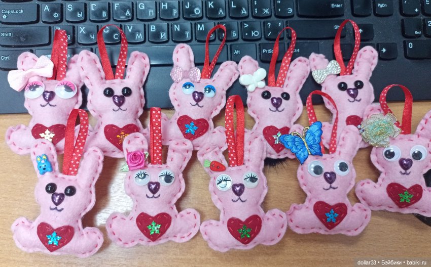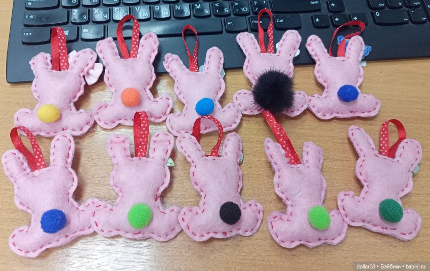 В этом году шила всем зайчиков, их можно повесить на ёлочку)