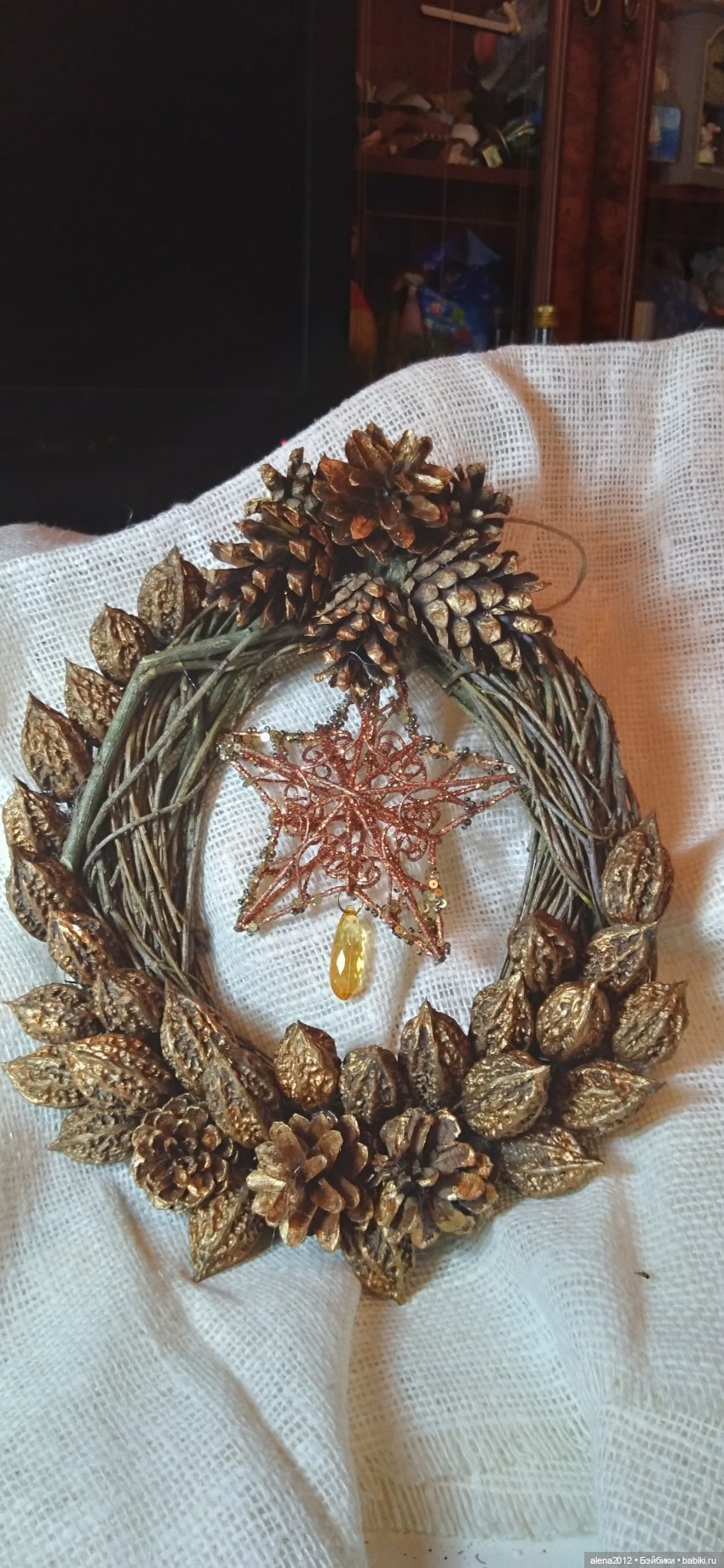 В этом году, скорее по- привычке, да ещё из- за того что осталось много орехов, шишек, лишних шариков и акриловой краски, продолжила делать венки. Из остатков…